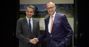 Facebook Twitter Pinterest Σε πλήρη εθνική αποτυχία οδηγεί την χώρα ο κ.Μητσοτάκης μετά τη σιωπηρή αποδοχή του, στις δημόσιες δηλώσεις τού καγκελάριου Merz, που έγιναν ενώπιον του, με τις οποίες χαρακτήριζε το casus belli και την κατοχή της μισής Κύπρου «τυπολατρείες», που εμποδίζουν την ένταξη της Τουρκίας στο χρηματοδοτικό πρόγραμμα “SAFE” του ευρωστρατού, τασσόμενος μάλιστα … Συνεχίστε να διαβάζετε το Μείζων εθνική ήττα η συμμετοχή της Τουρκίας στα εξοπλιστικά προγράμματα του ευρωστρατού μετά την αφαίρεση του άρθρου 218 δηλαδή του δικαιώματος βέτο από το χρηματοδοτικό πρόγραμμα “SAFE”.